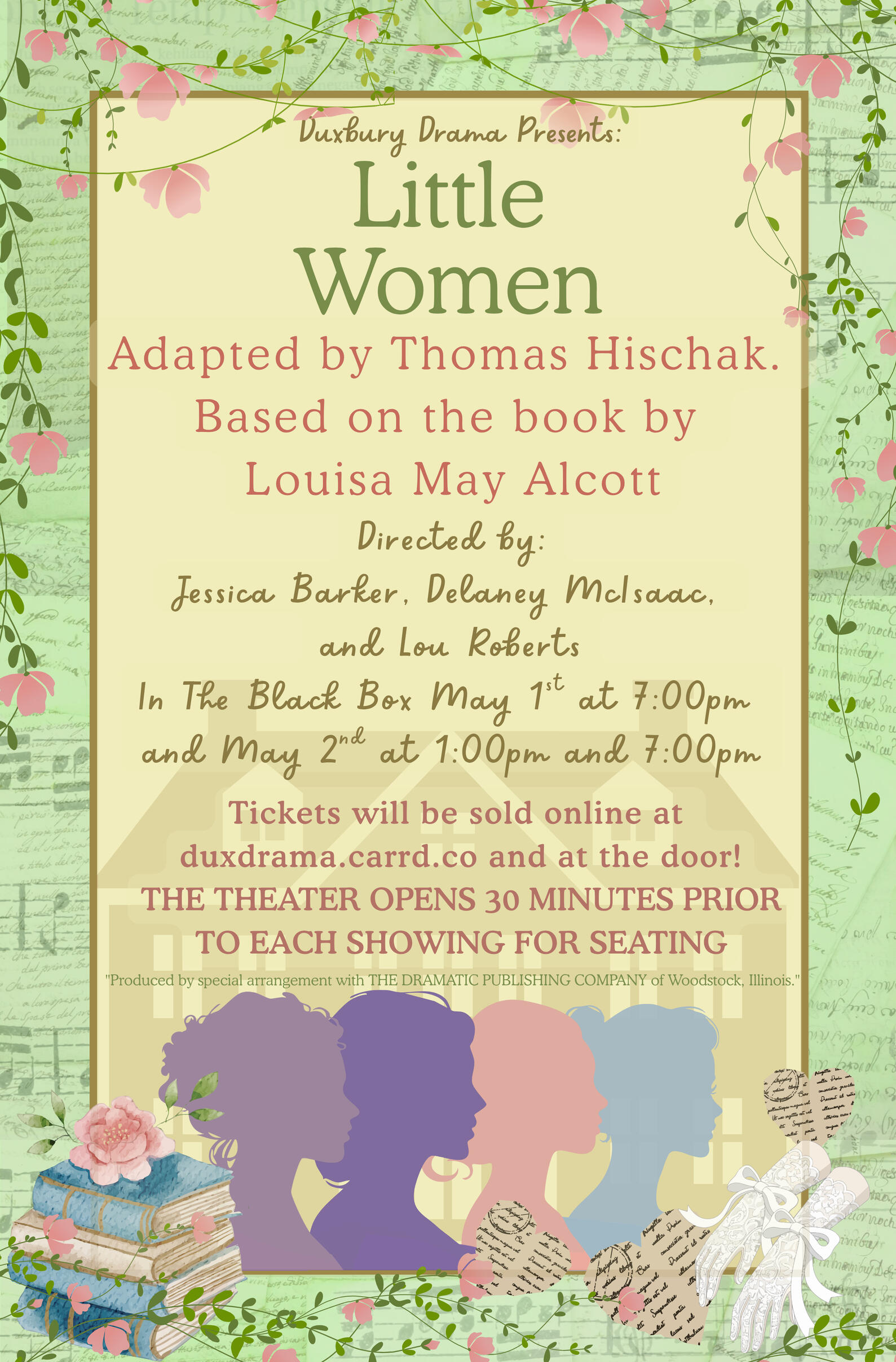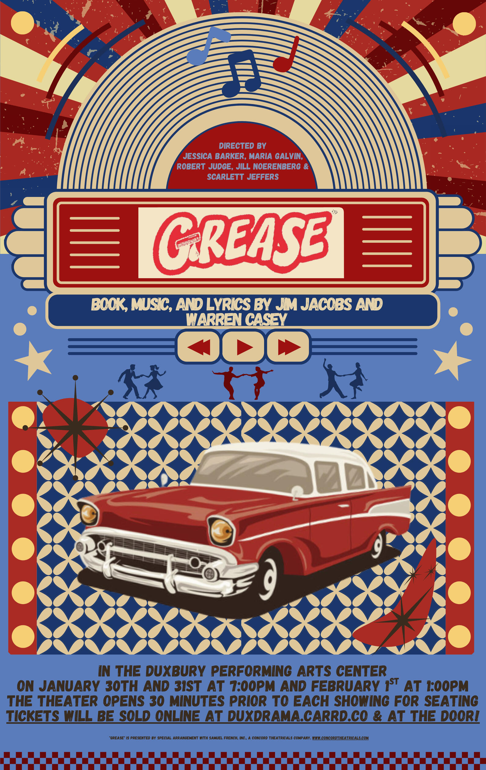 Duxbury High School's Theatre Program offers a diverse range of performance opportunities for students of all experience levels and interests. In a typical year, we produce nine shows: the Fall Tournament of Plays (three one-acts), the Musical, the METG State Festival Play, a Full-Length Play, and the Spring Festival of Plays (three one-acts).In each production, there are opportunities for students to direct, act, design, build, or work on one of our many crews (stage/set, costumes, props, makeup/hair, lights, sound, publicity, ticketing, programs, archives, concessions, etc.)